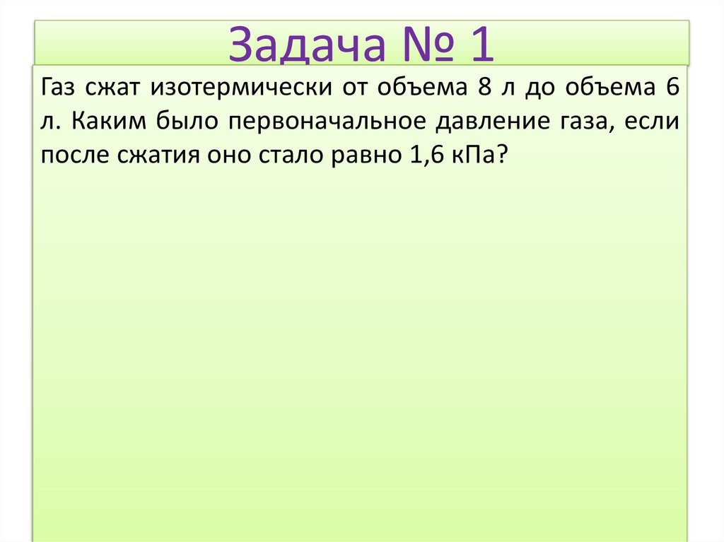 Газ сжат изотермически от объема 8 л до объема 6л. Каким было первоначальное давление газа, если