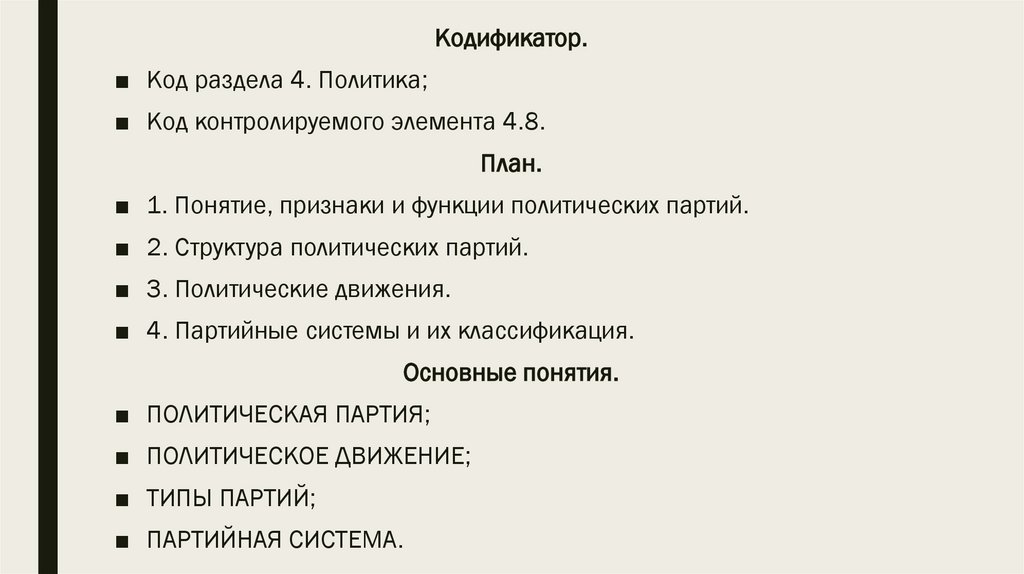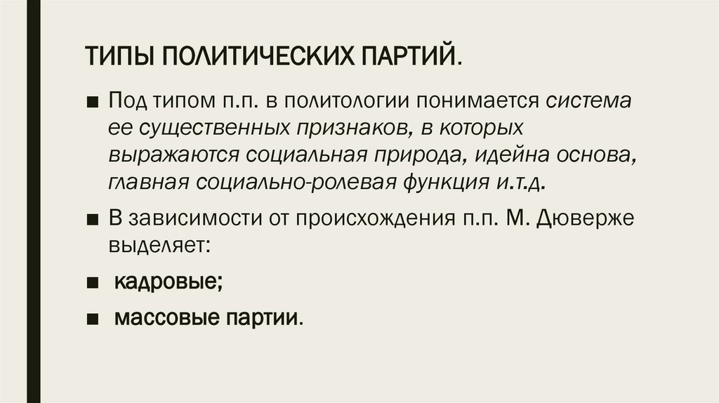 10. ТИПЫ ПОЛИТИЧЕСКИХ ПАРТИЙ.