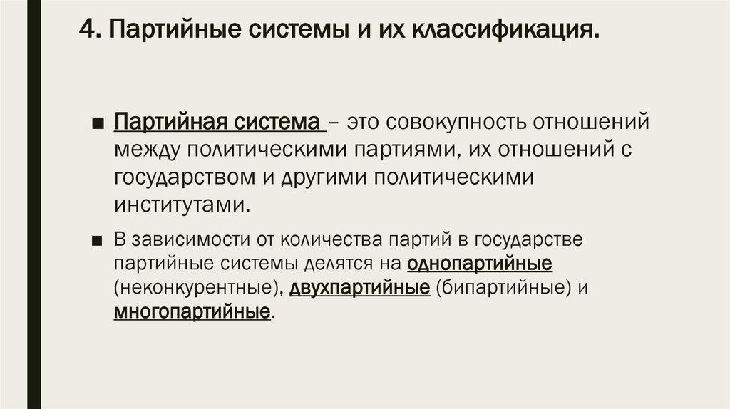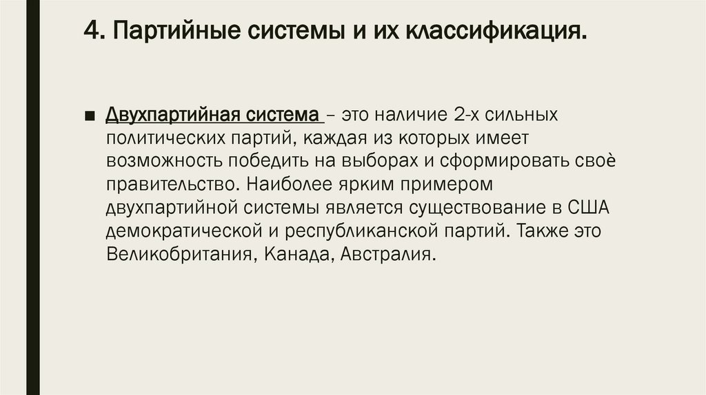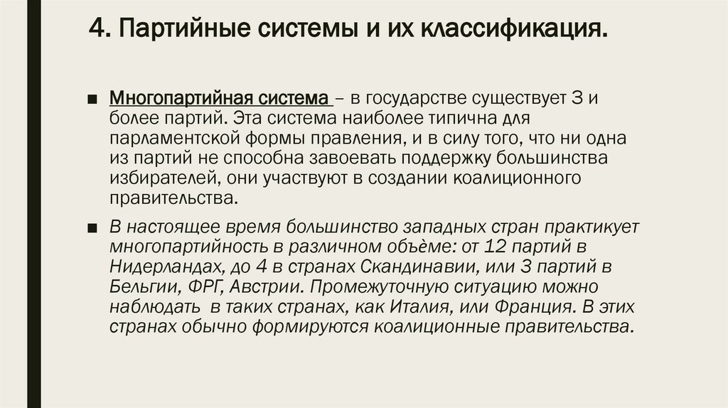 ■ Многопартийная система – в государстве существует 3 иболее партий. Эта система наиболее типична для