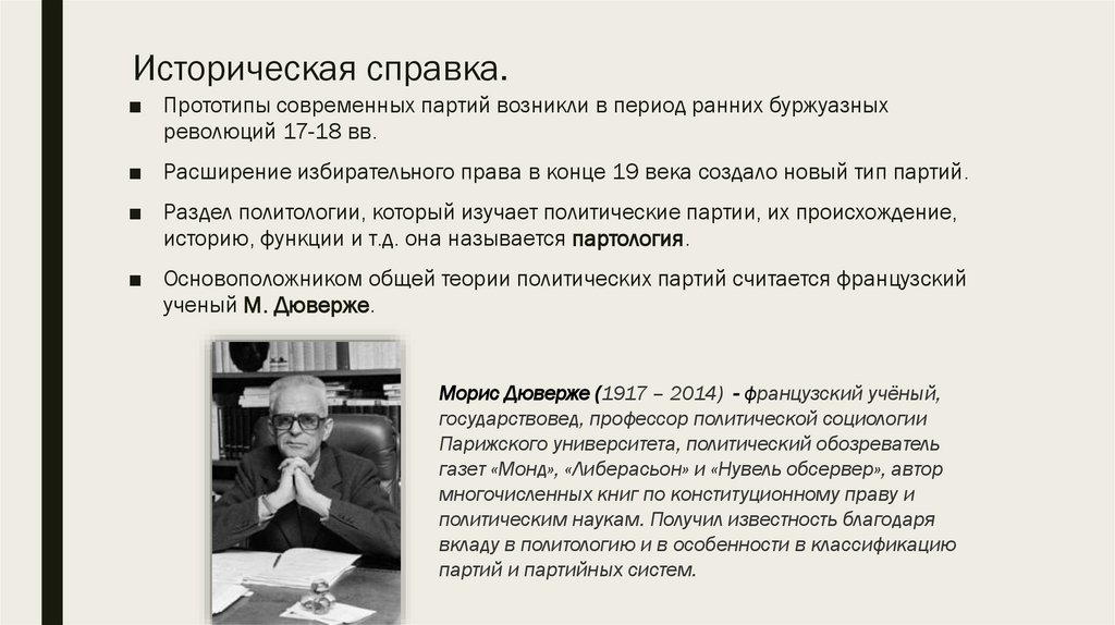 Морис Дюверже (1917 – 2014) - французский учёный,