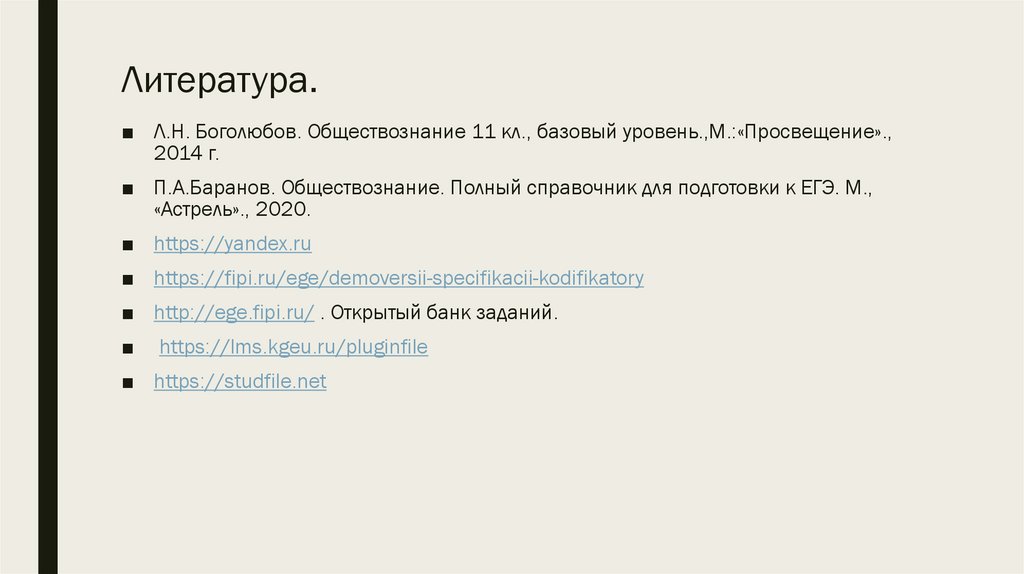 ■ Л.Н. Боголюбов. Обществознание 11 кл., базовый уровень.,М.:«Просвещение».,2014 г.