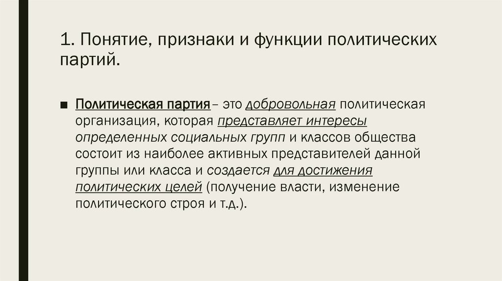 ■ Политическая партия– это добровольная политическаяорганизация, которая представляет интересы