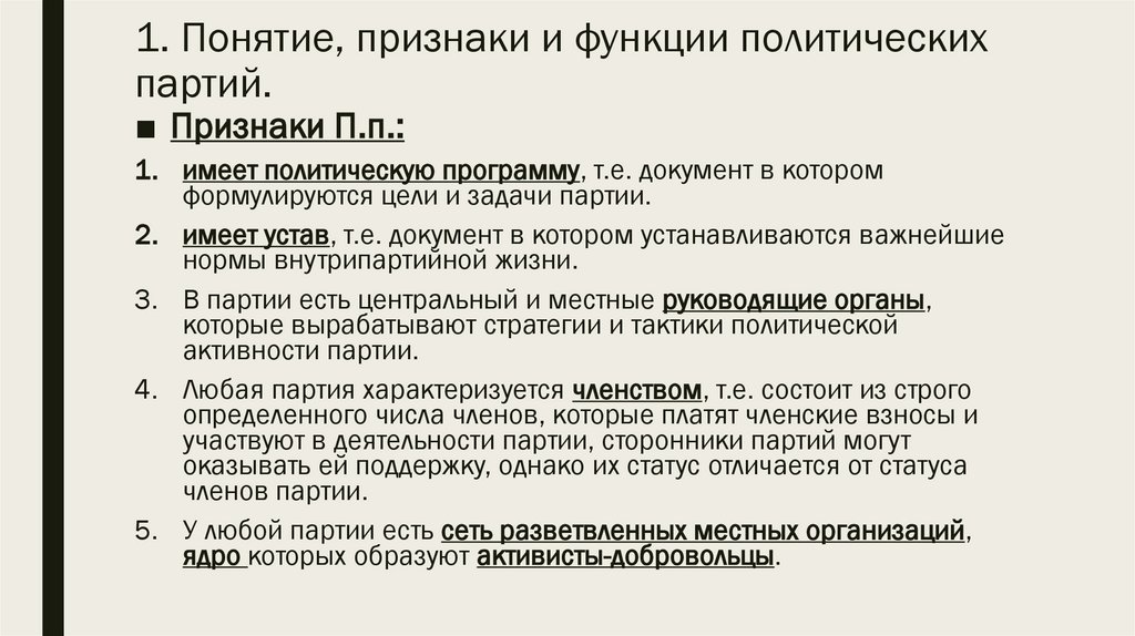■ Признаки П.п.:1. имеет политическую программу, т.е. документ в котором