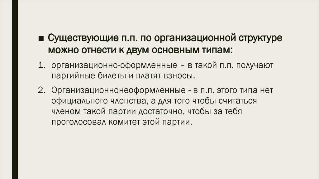 ■ Существующие п.п. по организационной структуреможно отнести к двум основным типам: