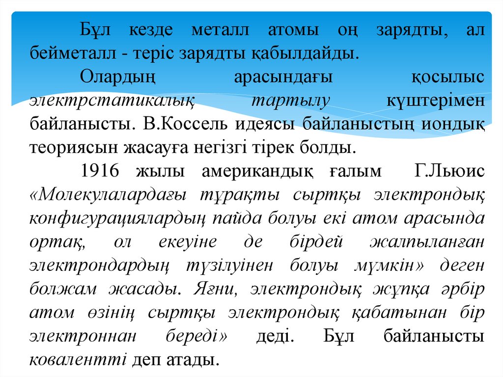 6. Жалпы жұп электрондар – химиялық байланыстың бірлігі,