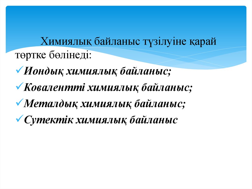 Химиялық байланыс түзілуіне қарайтөртке бөлінеді: