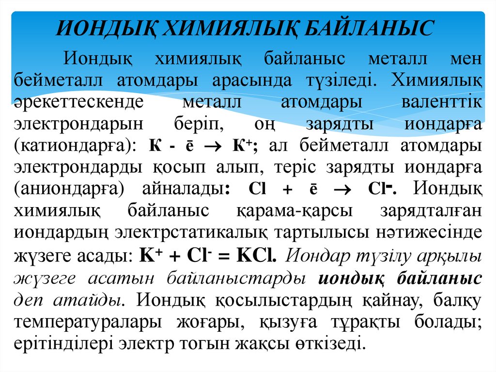 6. ИОНДЫҚ ХИМИЯЛЫҚ БАЙЛАНЫС