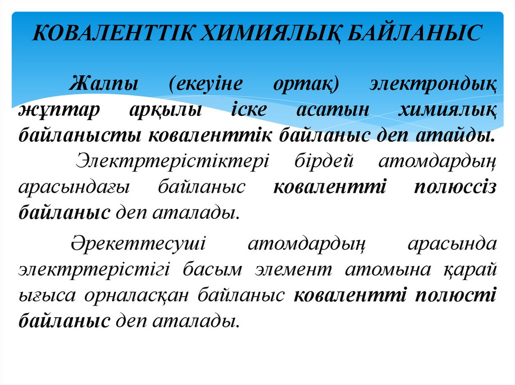 7. КОВАЛЕНТТІК ХИМИЯЛЫҚ БАЙЛАНЫС