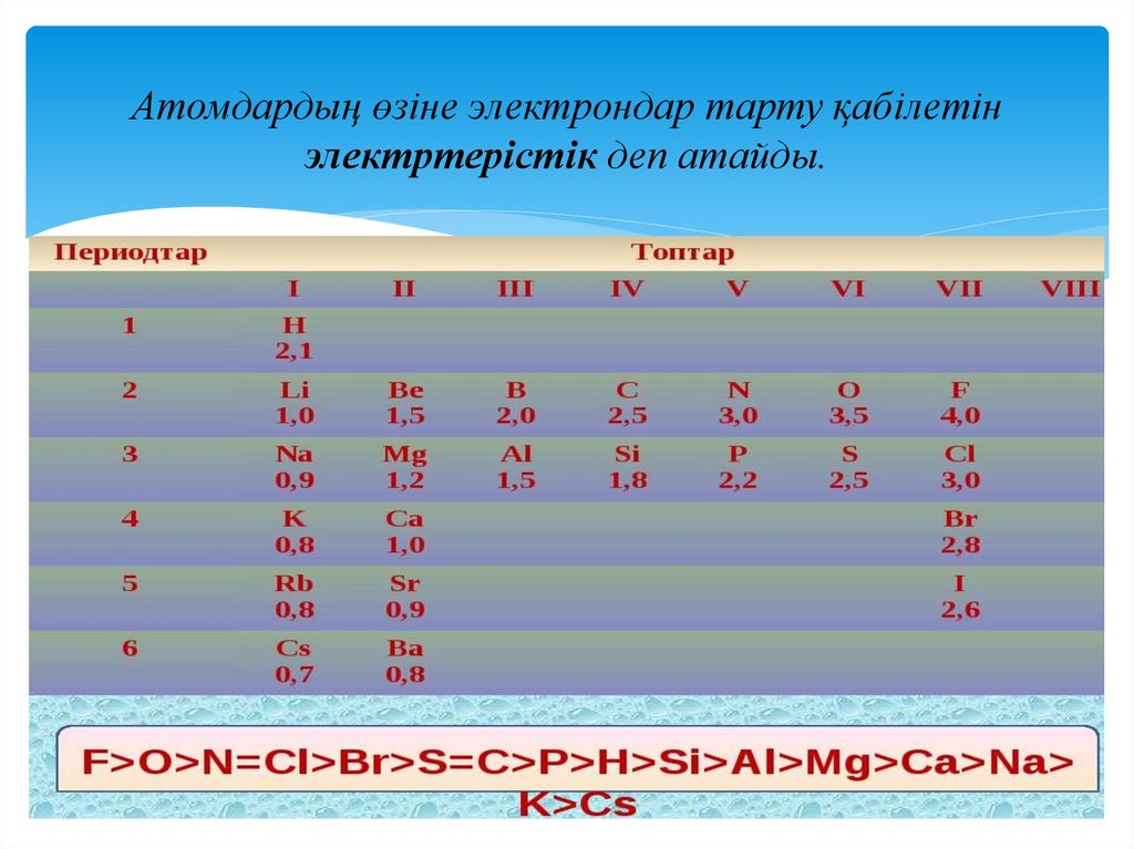 Атомдардың өзіне электрондар тарту қабілетінэлектртерістік деп атайды.