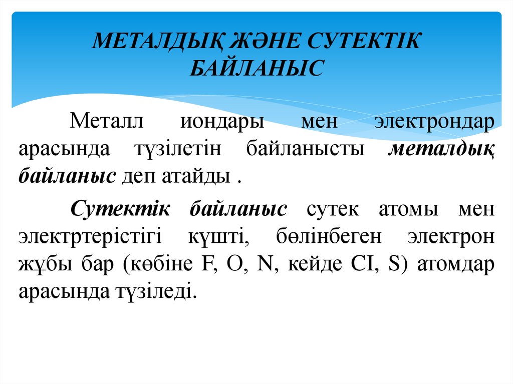10. МЕТАЛДЫҚ ЖӘНЕ СУТЕКТІК БАЙЛАНЫС