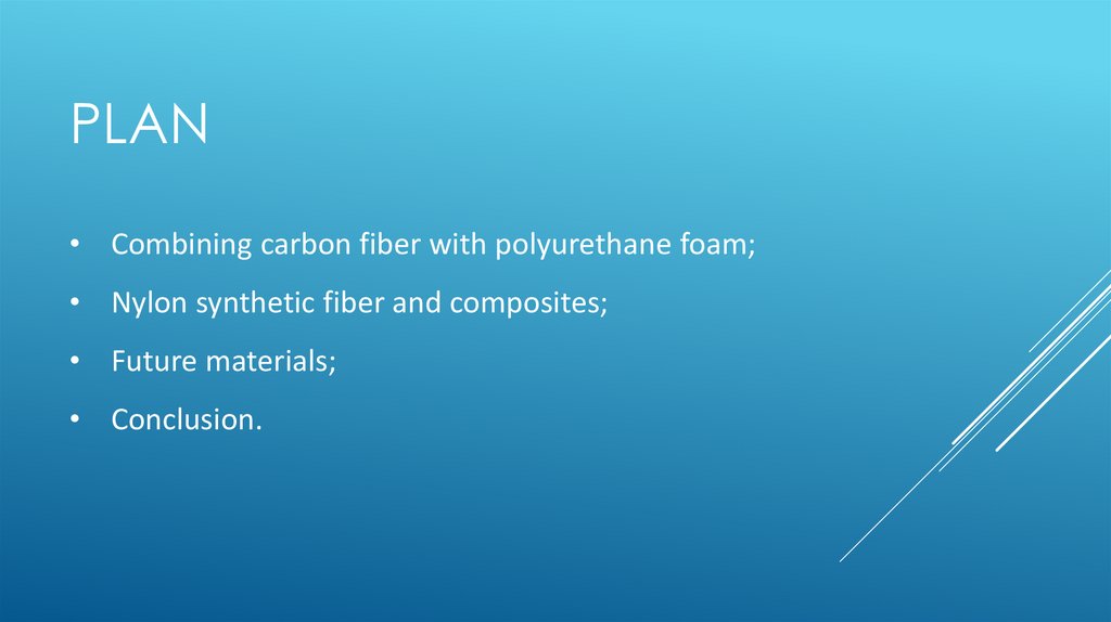 • Combining carbon fiber with polyurethane foam;• Nylon synthetic fiber and composites;