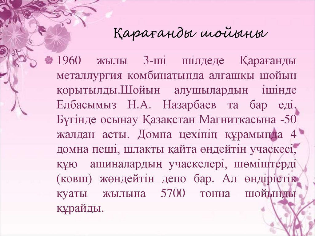 1960 жылы 3-ші шілдеде Қарағандыметаллургия комбинатында алғашқы шойын
