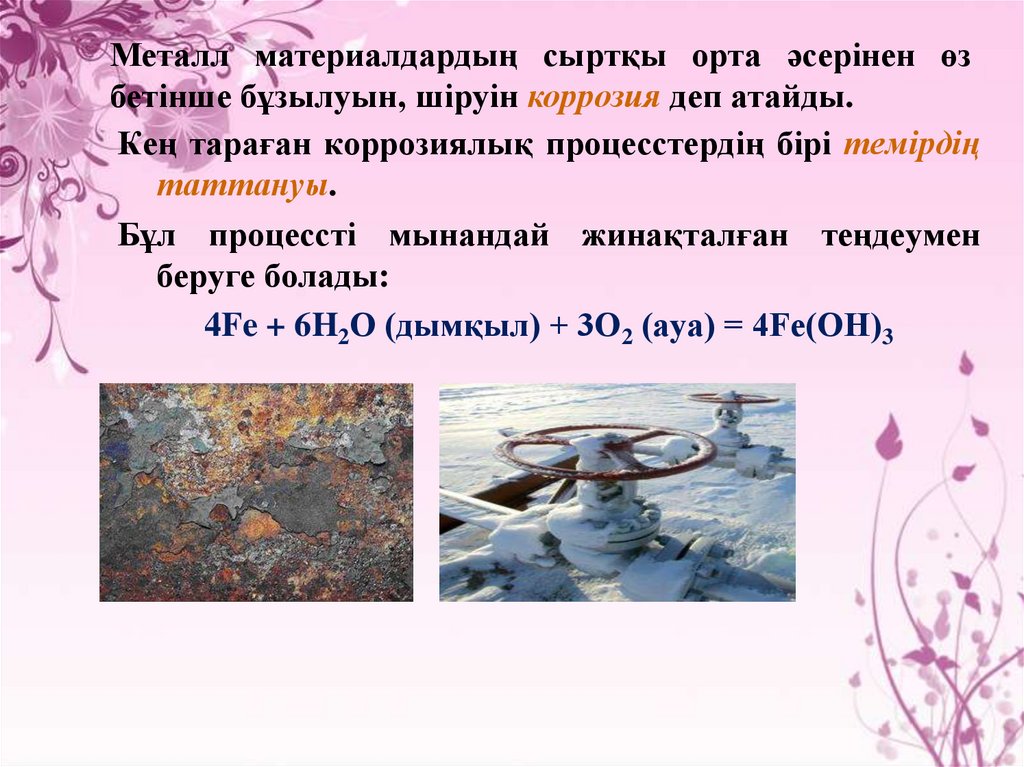 4Fe + 6H2O (дымқыл) + 3O2 (ауа) = 4Fe(OH)3