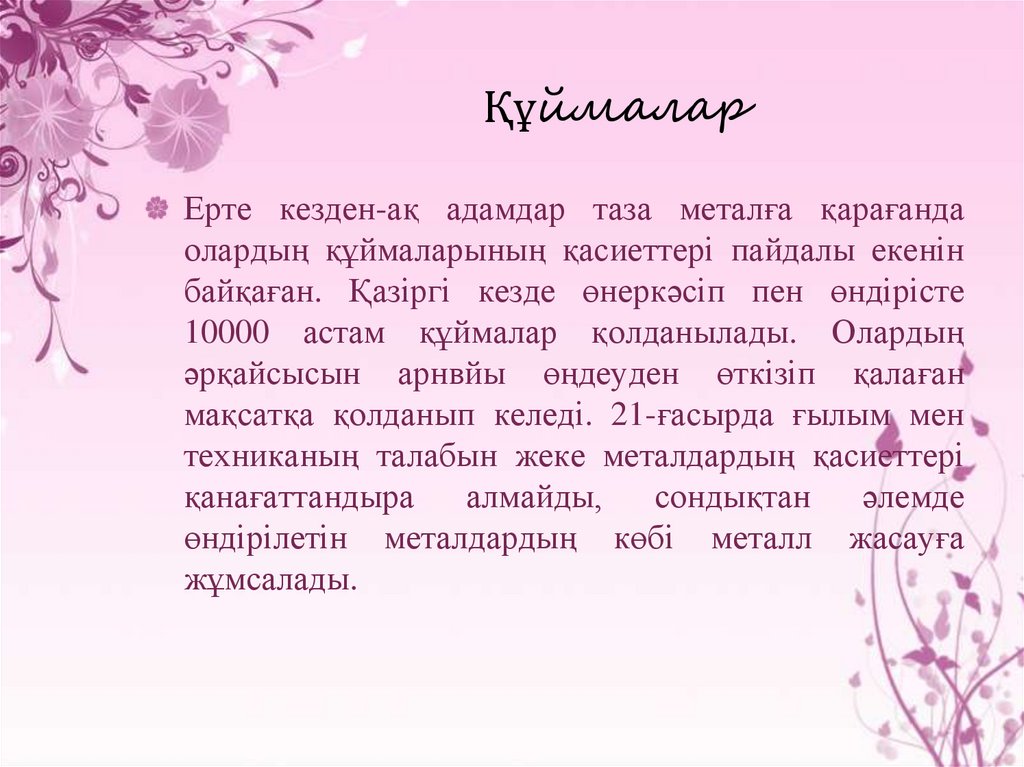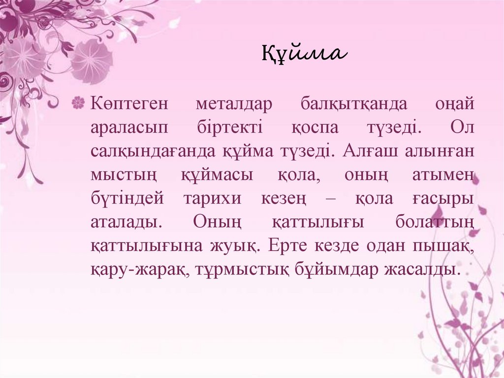 Ерте кезден-ақ адамдар таза металға қарағандаолардың құймаларының қасиеттері пайдалы екенін