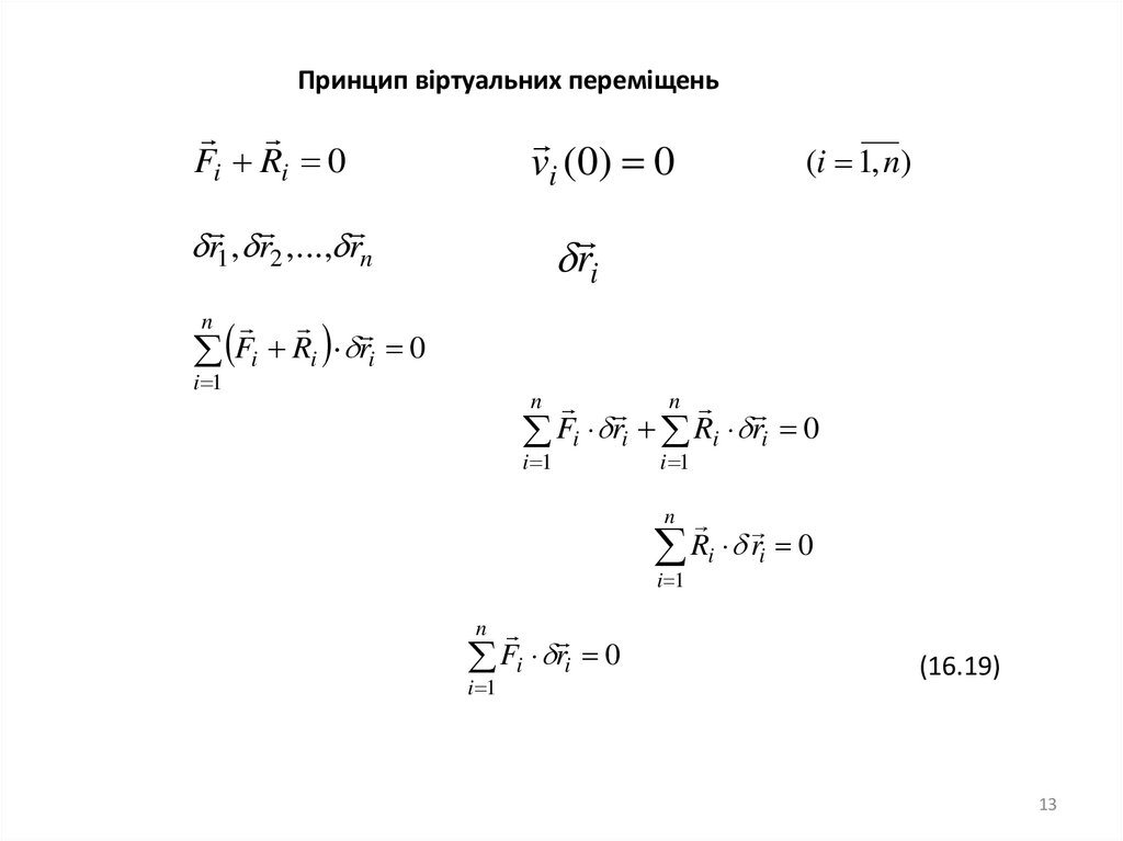 Принцип віртуальних переміщеньFi Ri 0