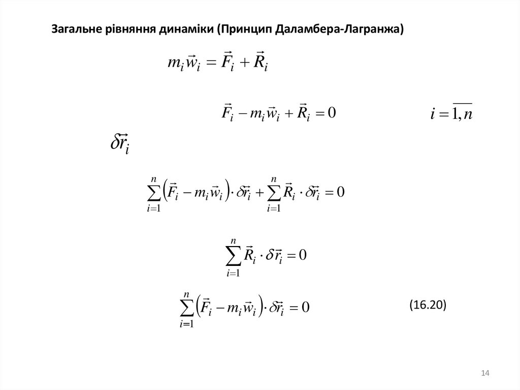 Загальне рівняння динаміки (Принцип Даламбера-Лагранжа)mi wi Fi Ri
