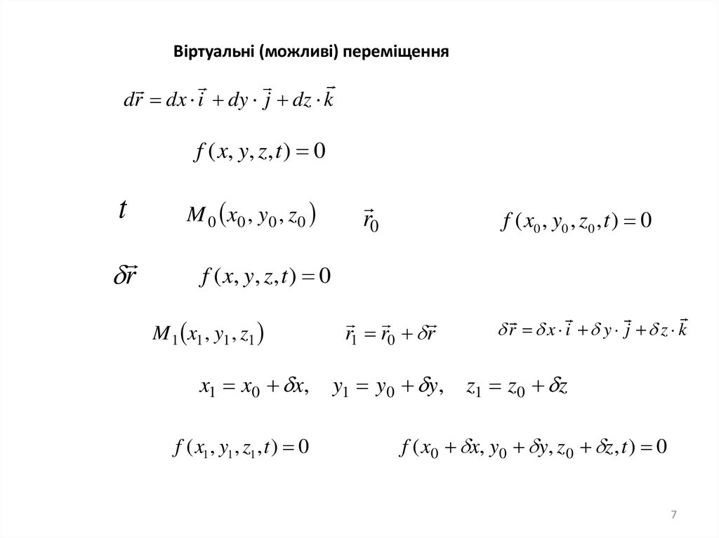 Віртуальні (можливі) переміщенняdr dx i dy j dz k