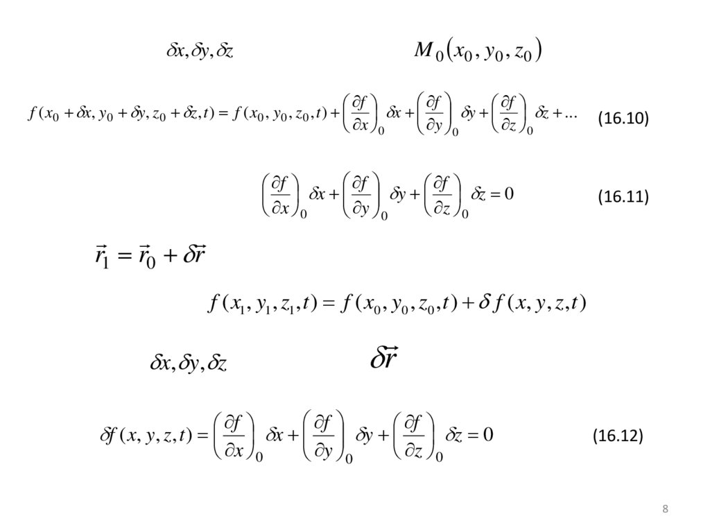 f ( x0 x, y0 y, z0 z , t ) f ( x0 , y0 , z0 , t ) x y z ...