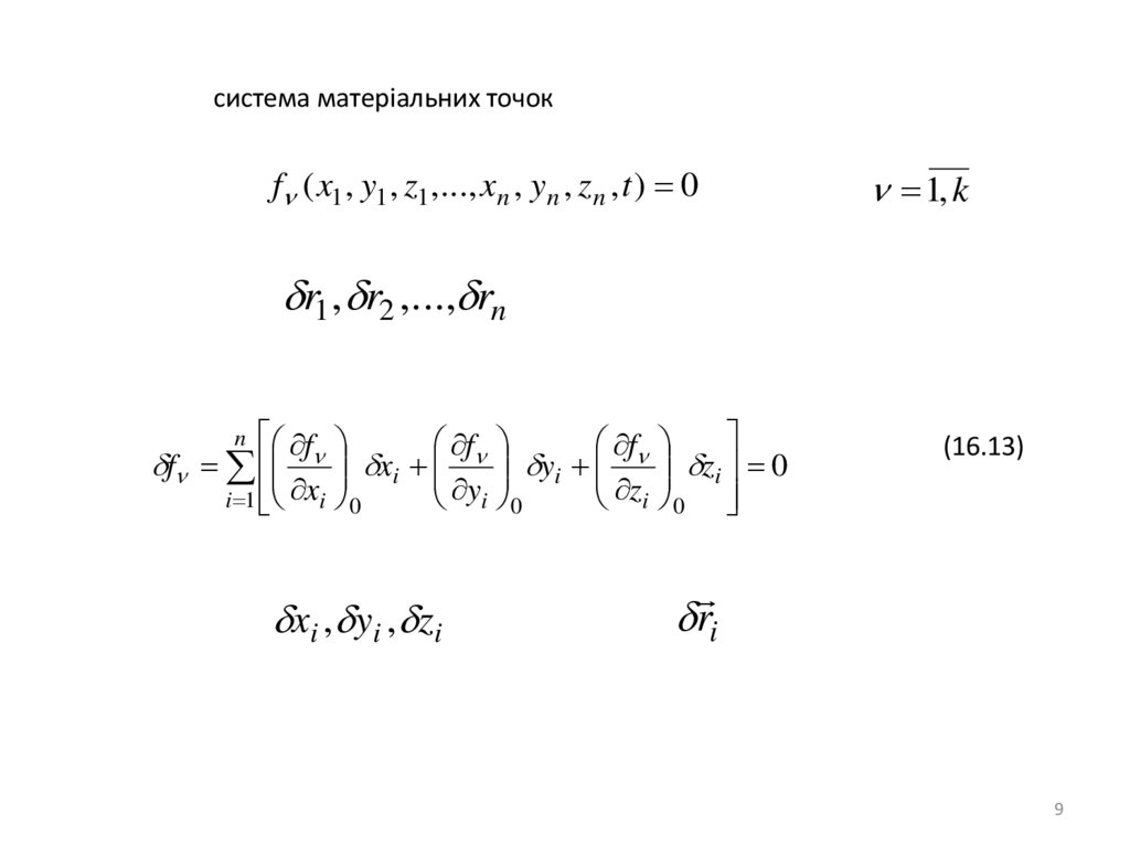 система матеріальних точокf ( x1 , y1 , z1 ,..., xn , yn , z n , t ) 0