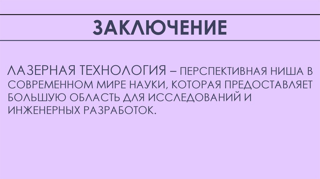 ЗАКЛЮЧЕНИЕЛАЗЕРНАЯ ТЕХНОЛОГИЯ – ПЕРСПЕКТИВНАЯ НИША В
