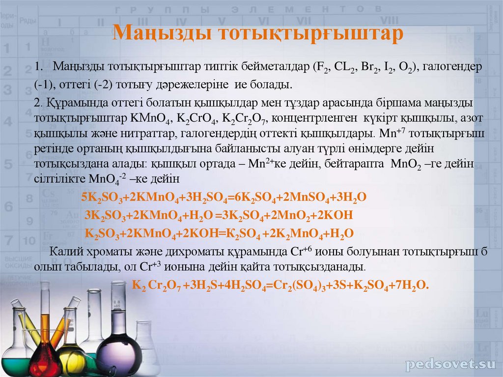 2. Маңызды тотықтырғыш пен тотықсыздандырғыштарды