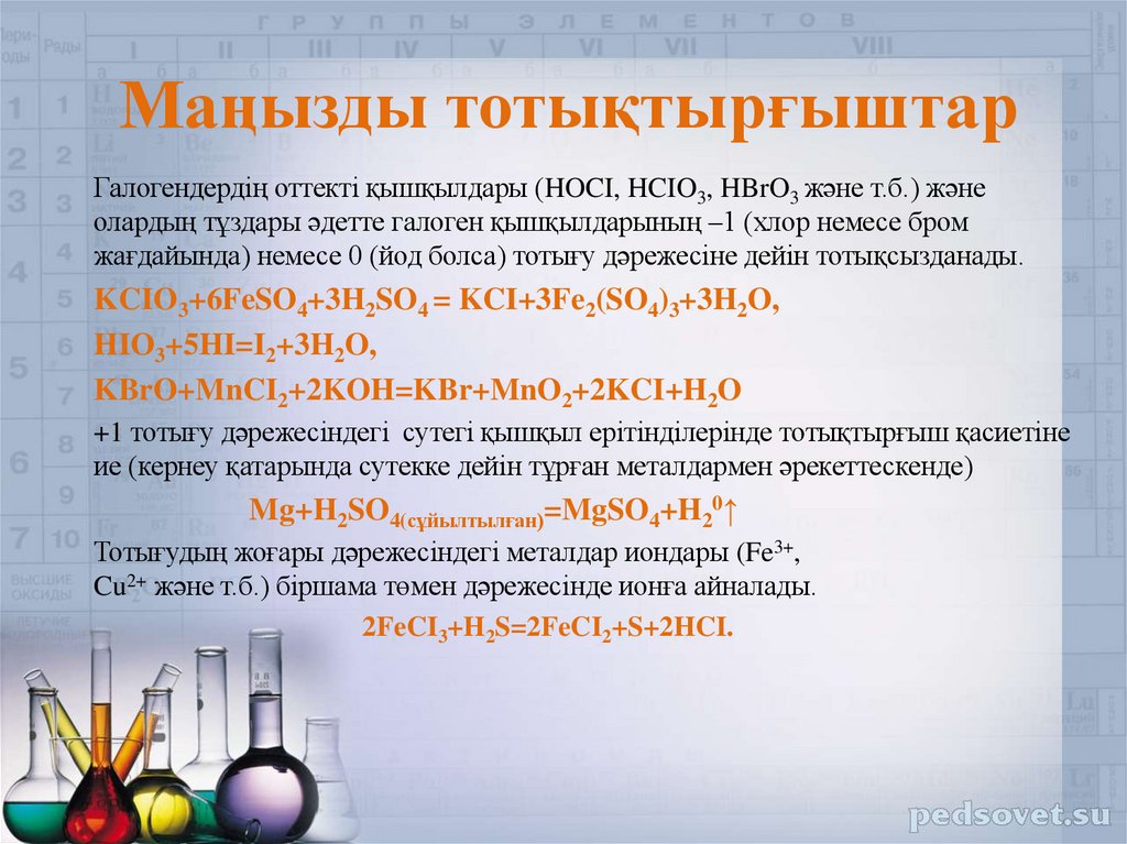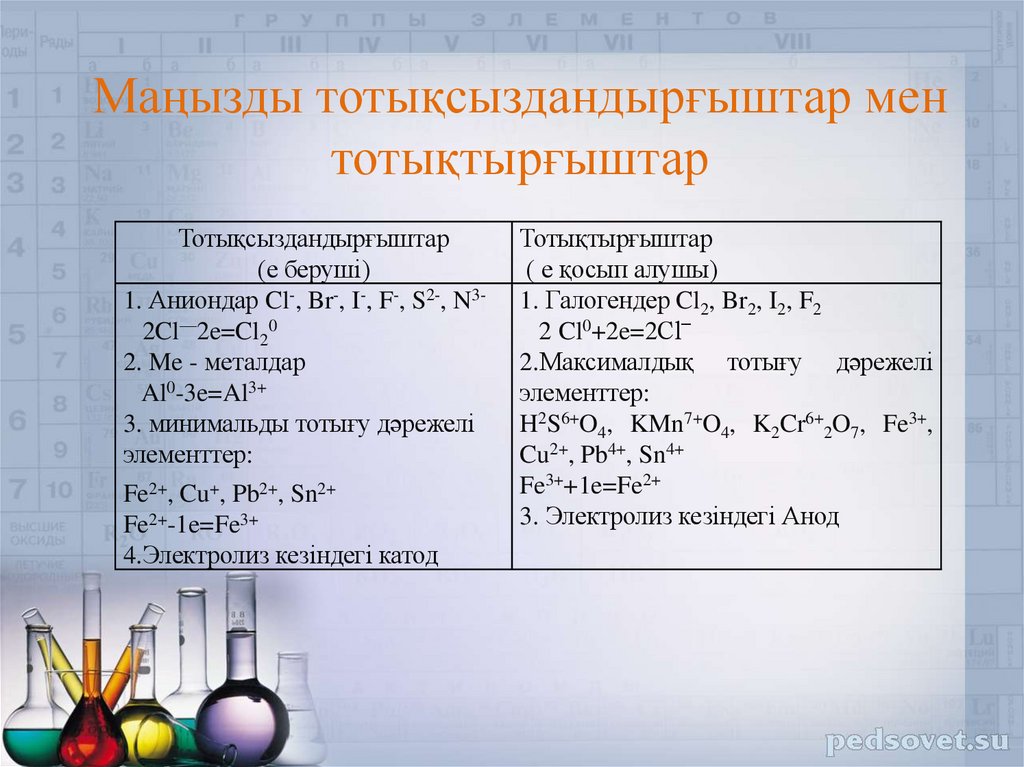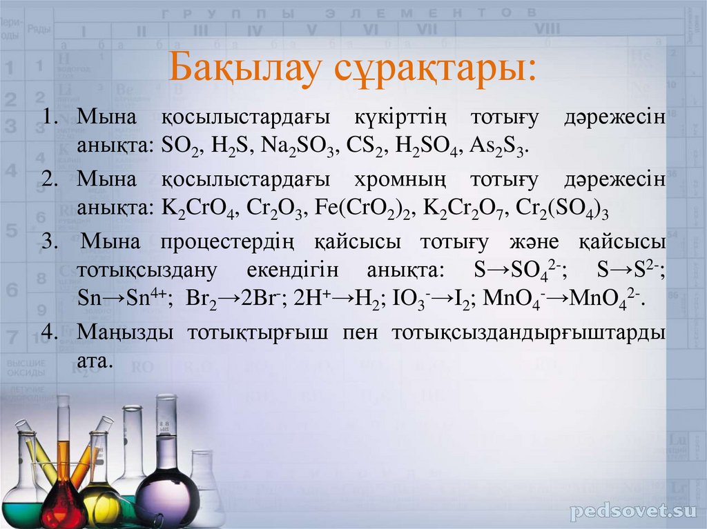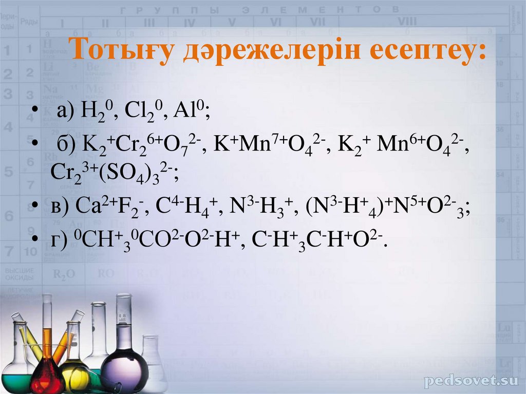 • Тотығу-тотықсыздану реакциялары;• Тотығу дәрежесі;