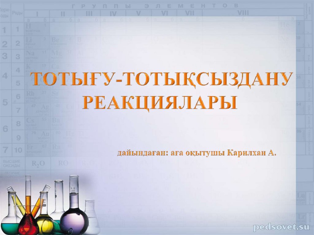 1. ТОТЫҒУ-ТОТЫҚСЫЗДАНУ РЕАКЦИЯЛАРЫ дайындаған: Жорабек Айгуль Аскаровна