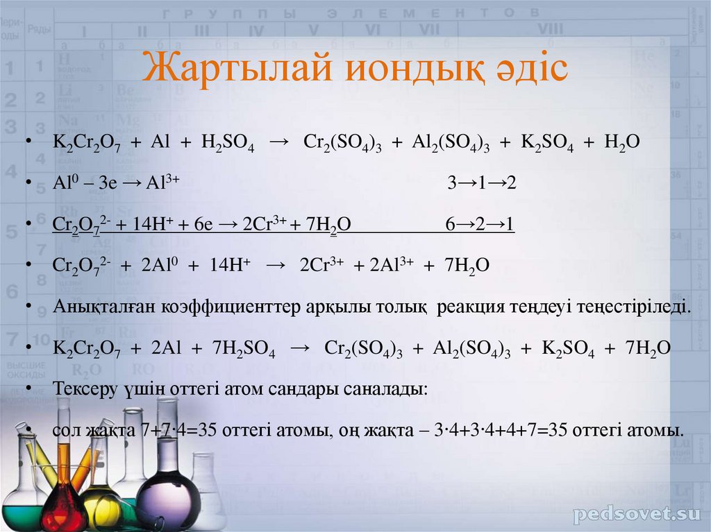 • Анықталған коэффициенттер арқылы толық реакция теңдеуі теңестіріледі.
