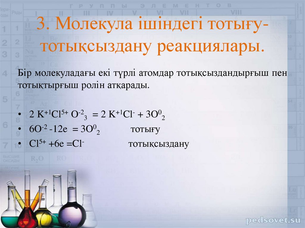 3. Молекула ішіндегі тотығутотықсыздану реакциялары.Бір молекуладағы екі түрлі атомдар тотықсыздандырғыш пен