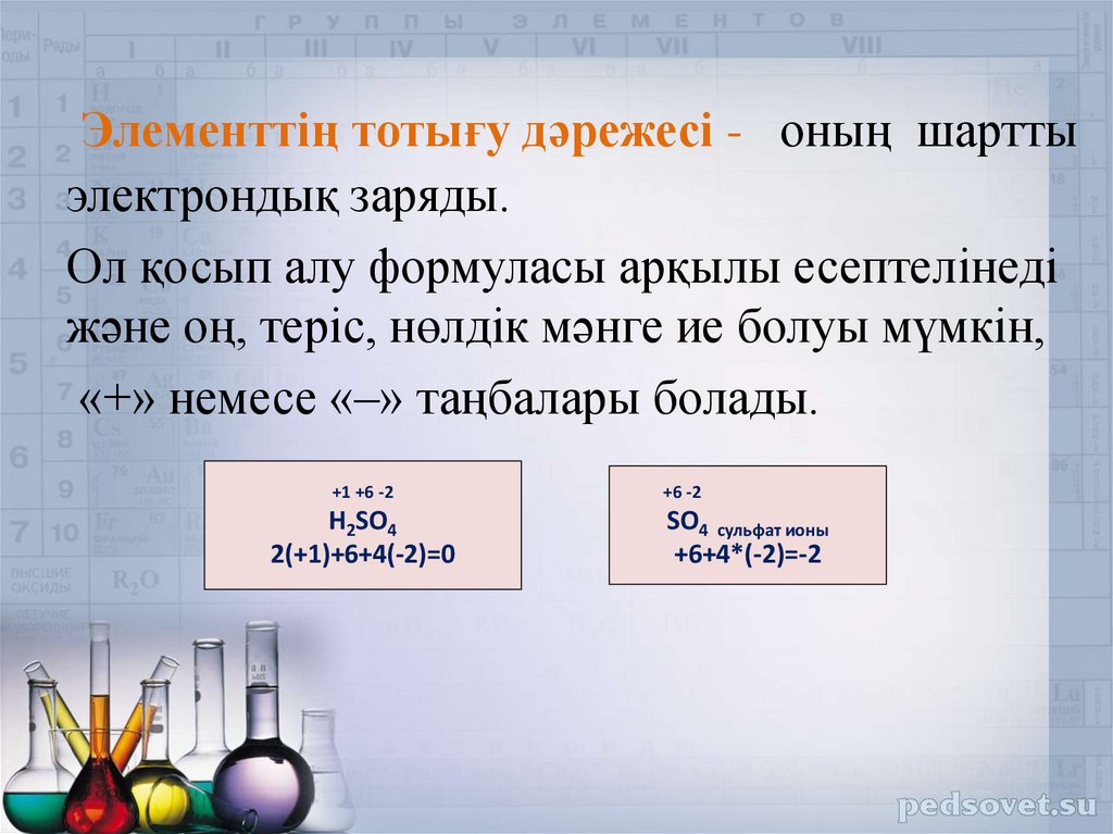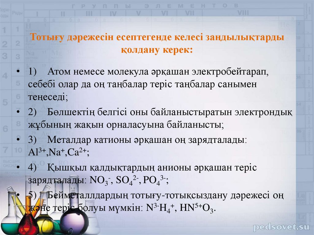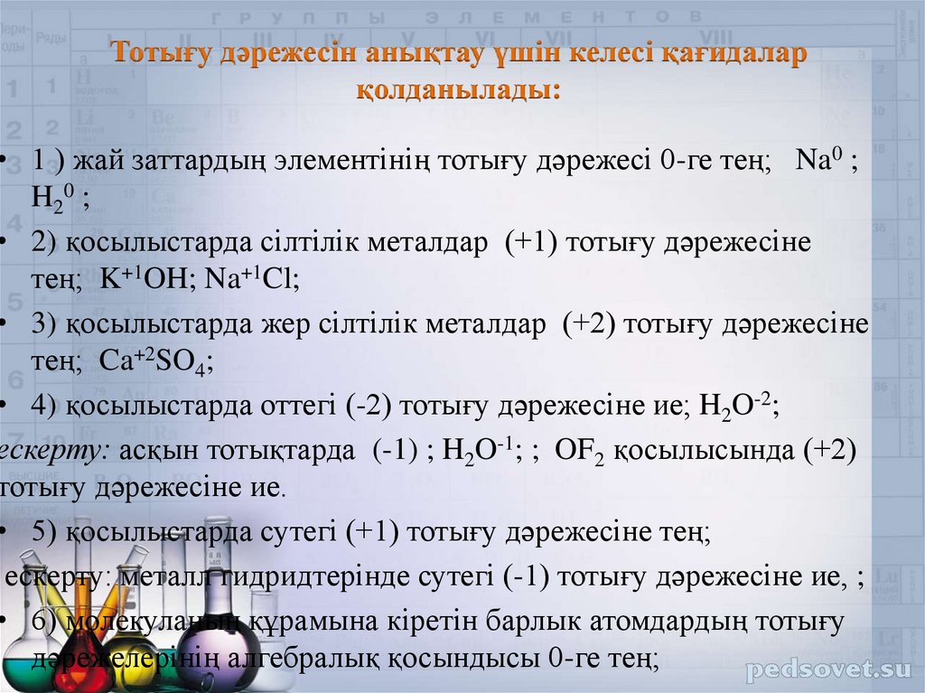 6. Тотығу дәрежесін есептегенде келесі заңдылықтарды қолдану керек: