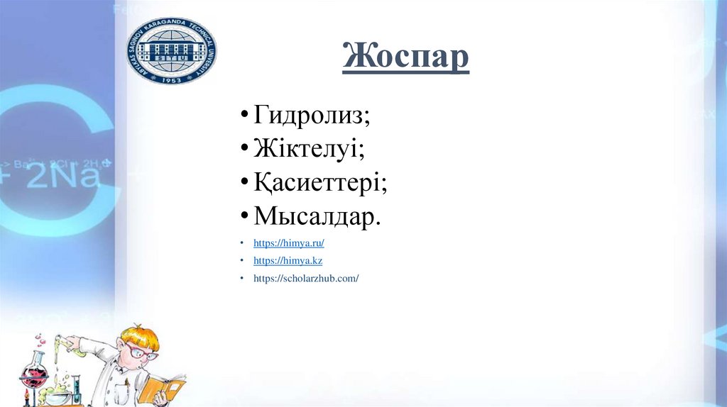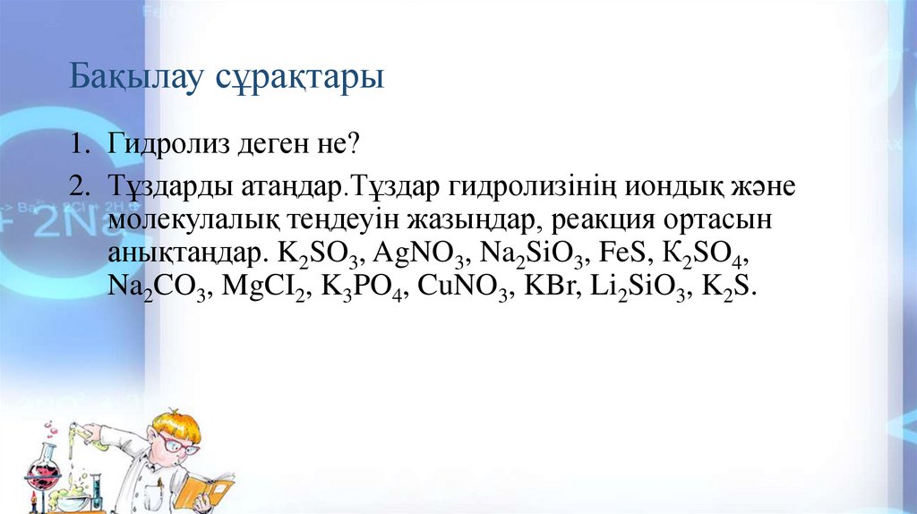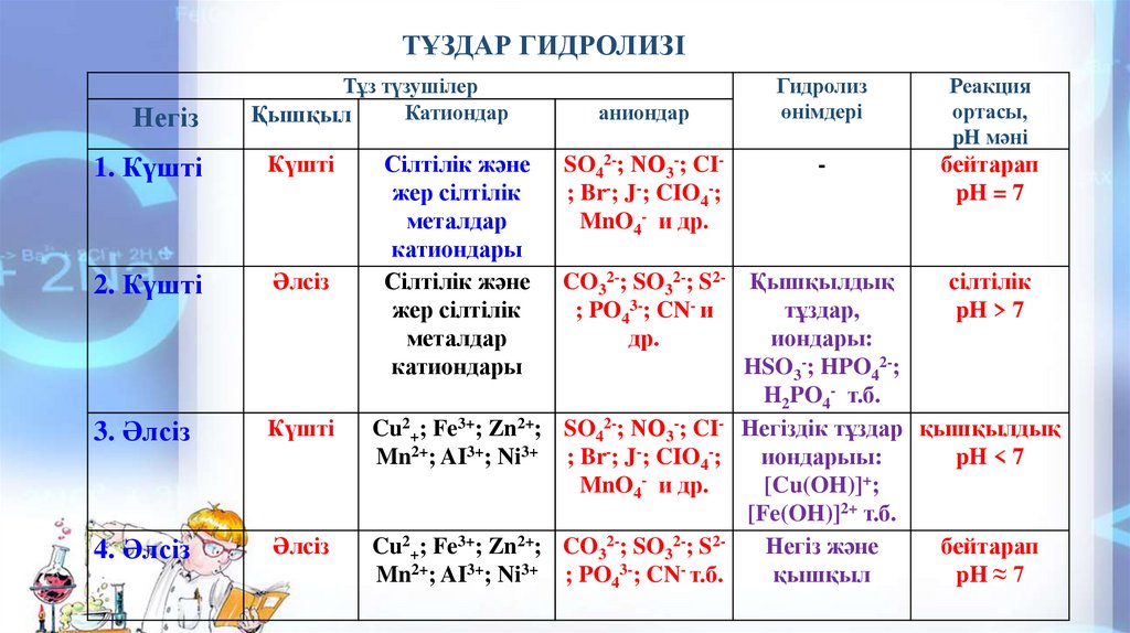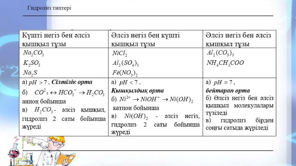 1. Тақырыбы: Тұздар гидролизі «Химия» пәні