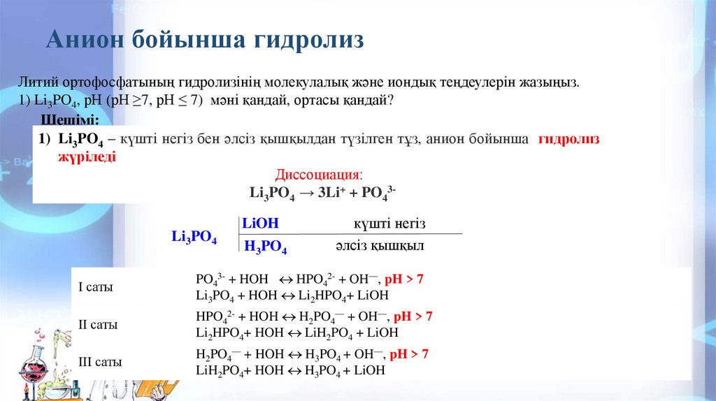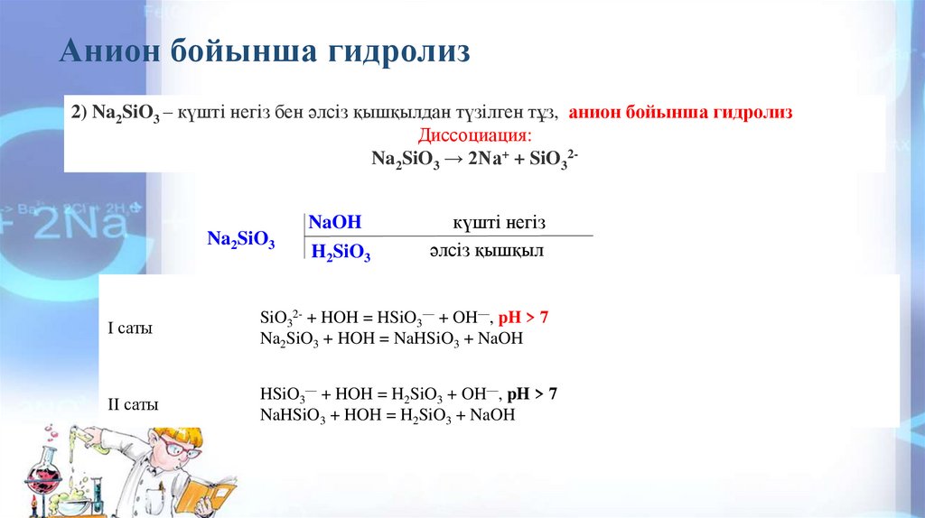 Күшті негіз бен әлсіз қышқылдан түзілген тұз анионы сутек катионымен
