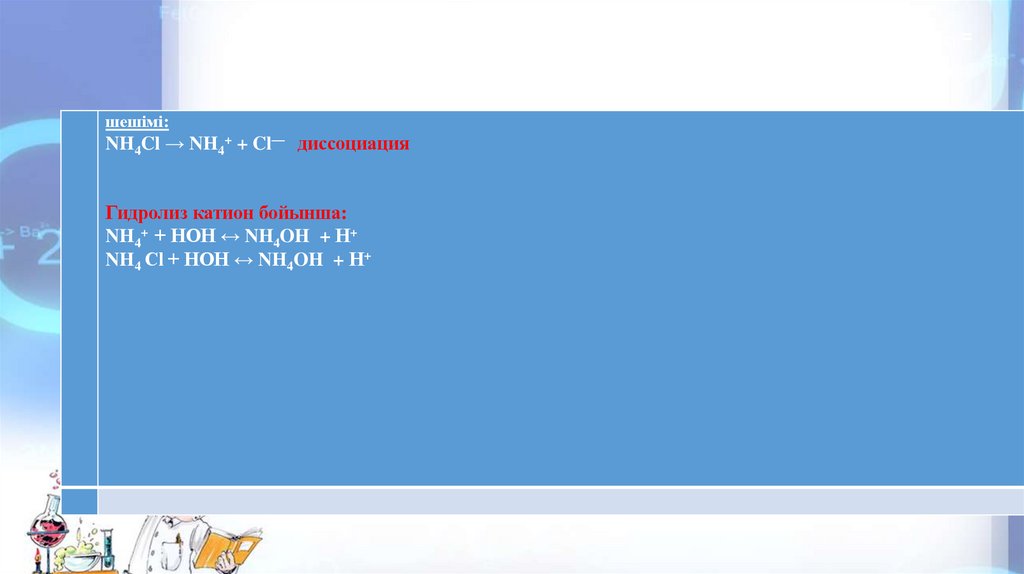 NH4CI + HOH ↔ NH4OH + HCI қайтымды процесс.