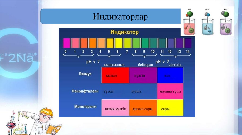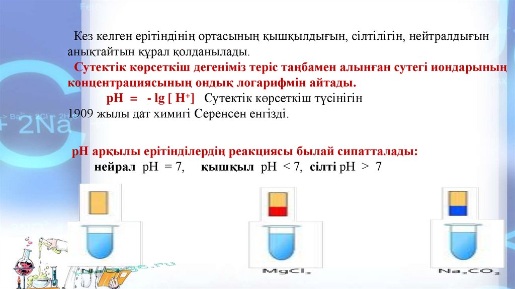 нейрал рН = 7, қышқыл рН < 7, сілті рН > 7