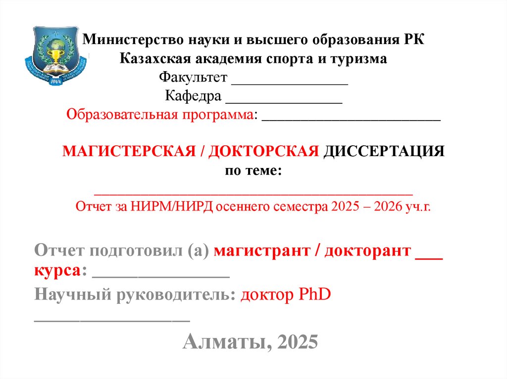 Отчет за НИРМ/НИРД осеннего семестра 2025 – 2026 уч.г.