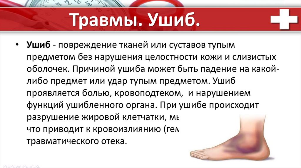 оболочек. Причиной ушиба может быть падение на какойлибо предмет или удар тупым предметом. Ушиб