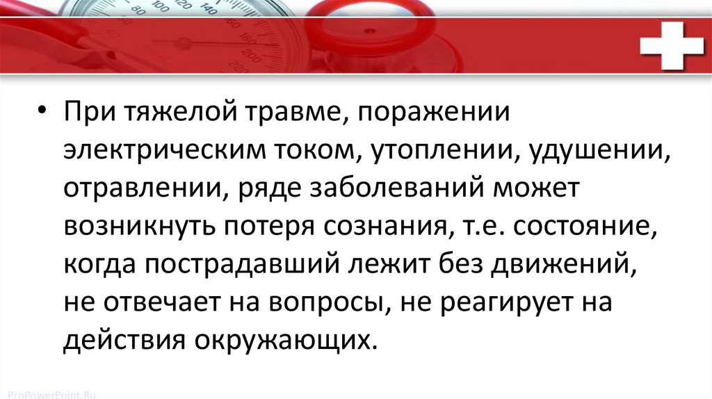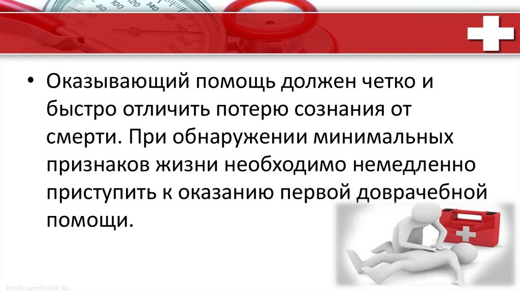 • Оказывающий помощь должен четко ибыстро отличить потерю сознания от