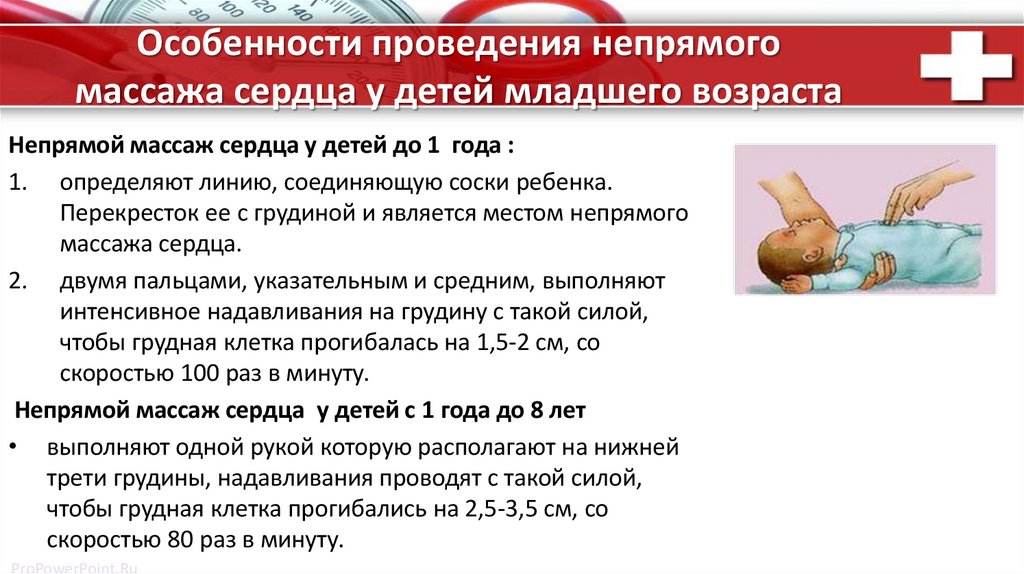 Непрямой массаж сердца у детей с 1 года до 8 лет