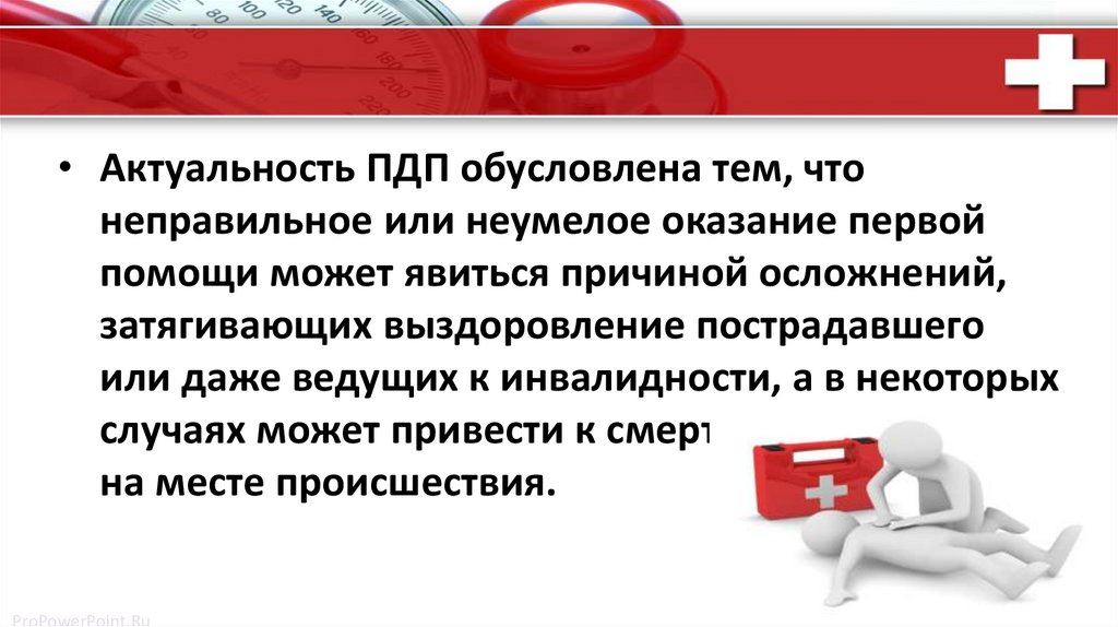 • Актуальность ПДП обусловлена тем, чтонеправильное или неумелое оказание первой