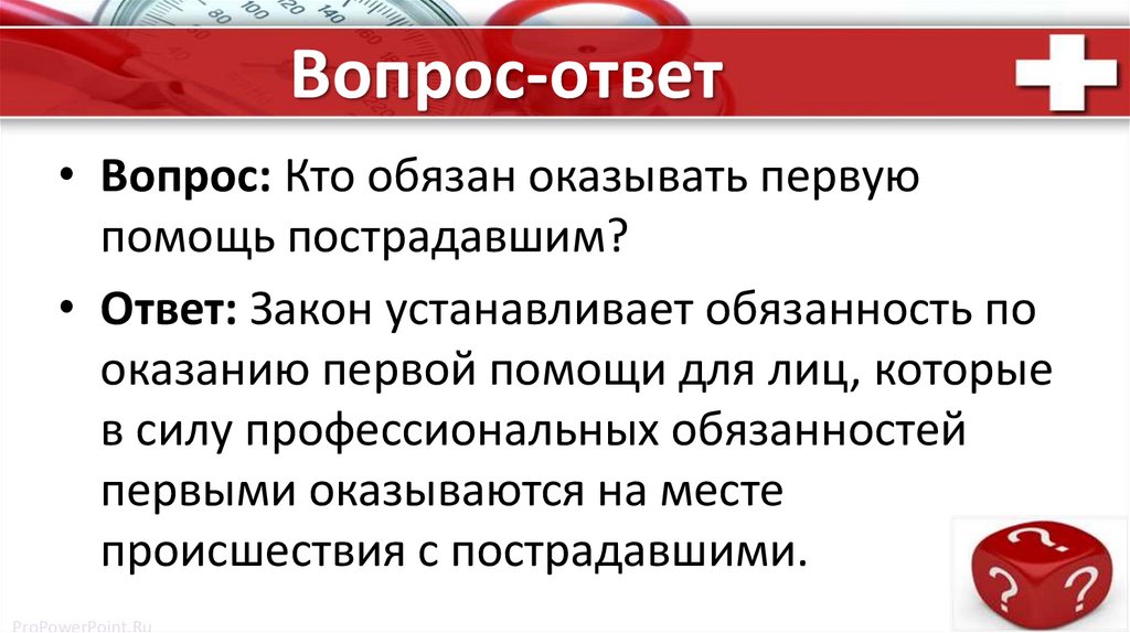 • Вопрос: Кто обязан оказывать первуюпомощь пострадавшим?