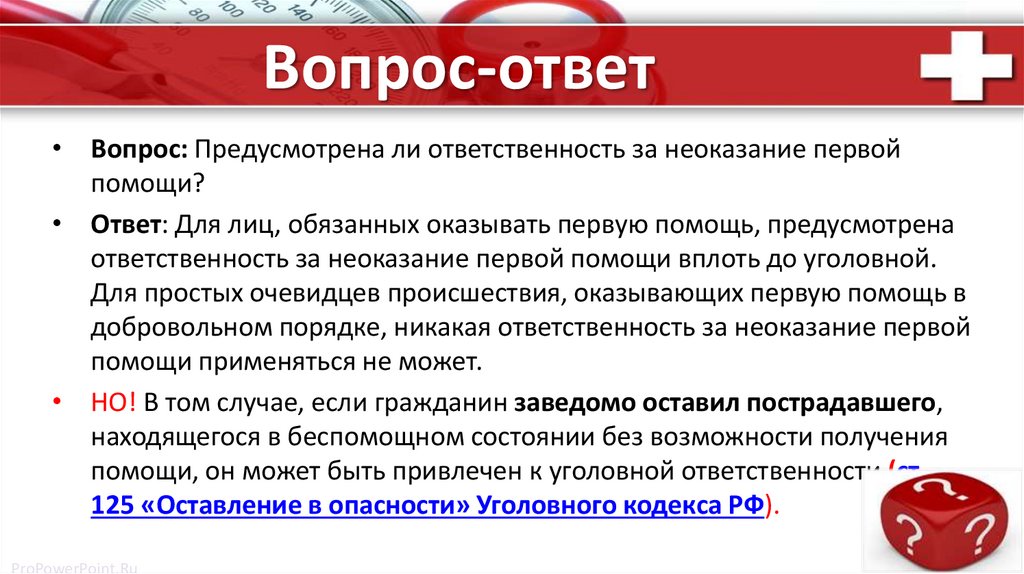 • Вопрос: Предусмотрена ли ответственность за неоказание первойпомощи?