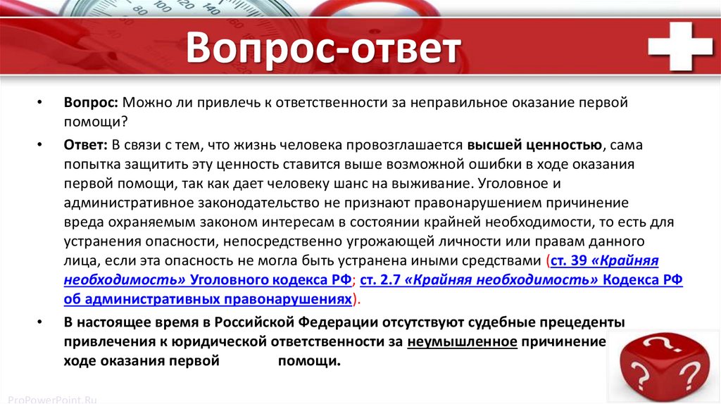 Вопрос: Можно ли привлечь к ответственности за неправильное оказание первой