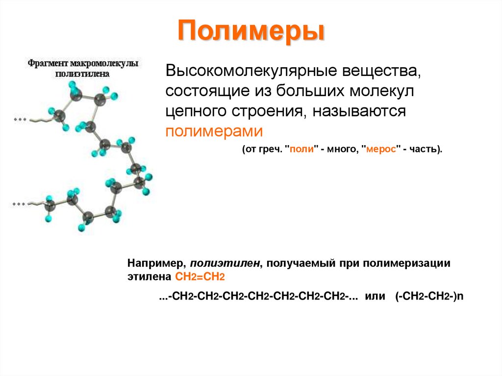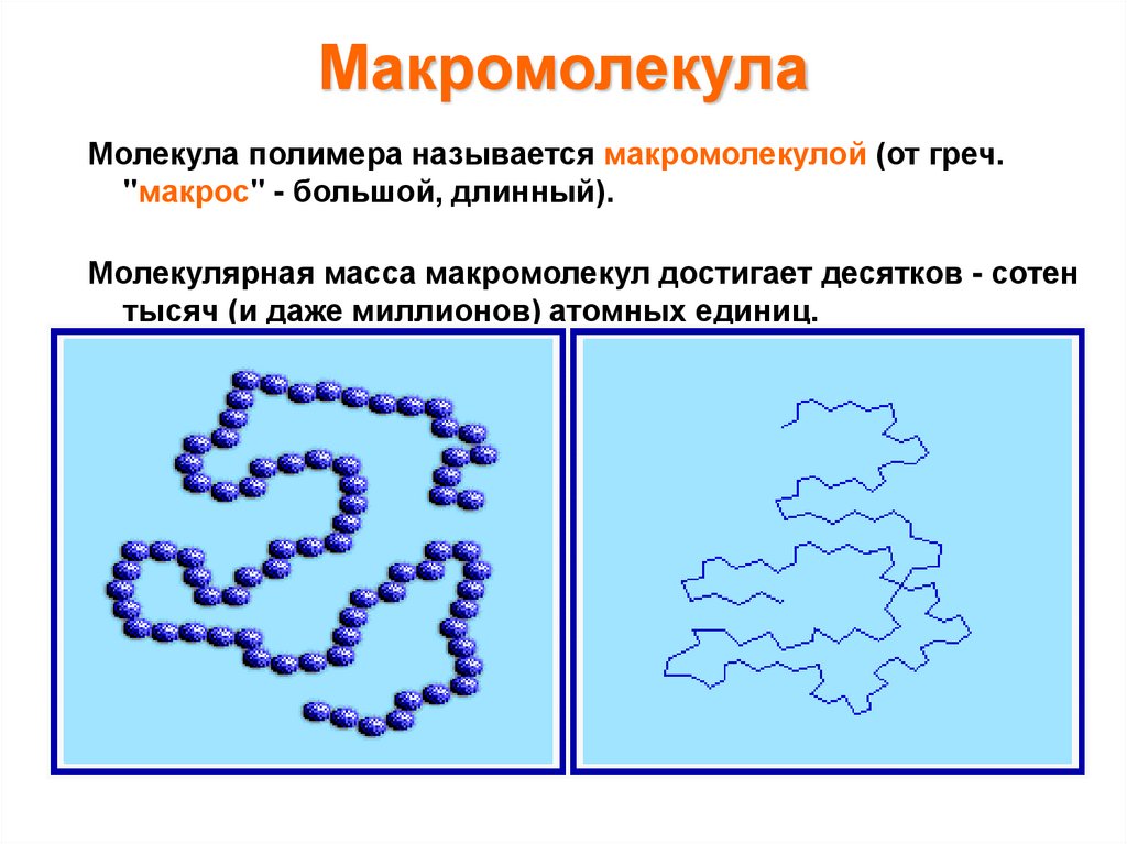 Молекула полимера называется макромолекулой (от греч."макрос" - большой, длинный).
