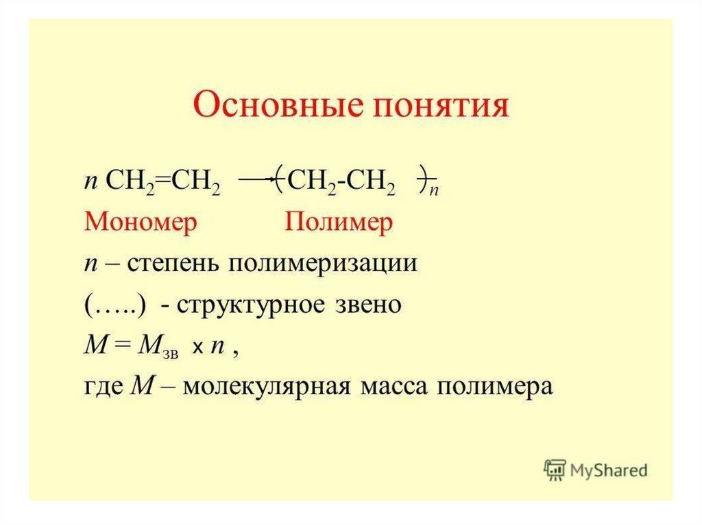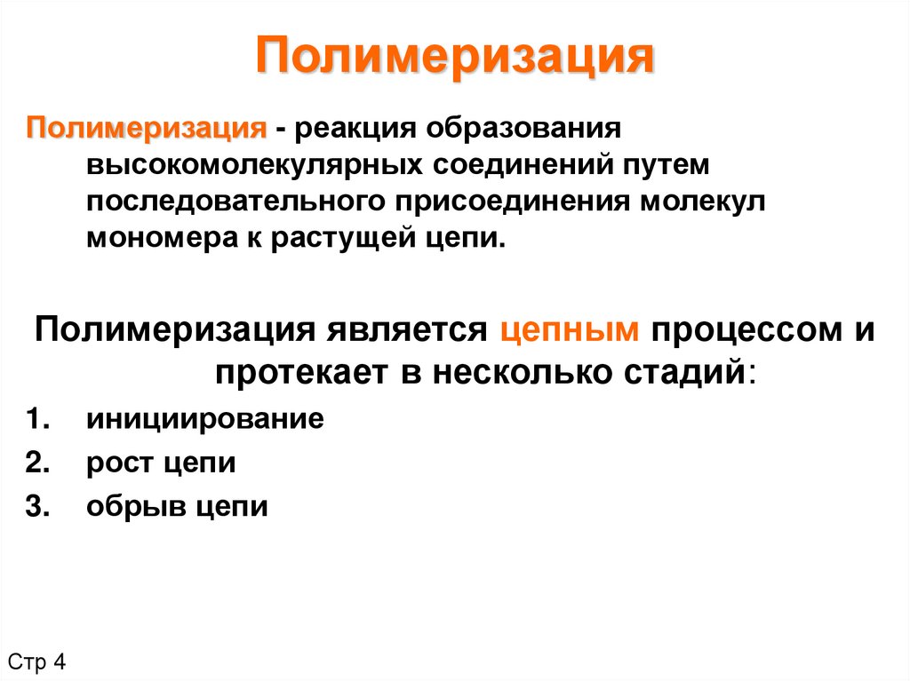 Пoлимеризация - реакция образованиявысокомолекулярных соединений путем