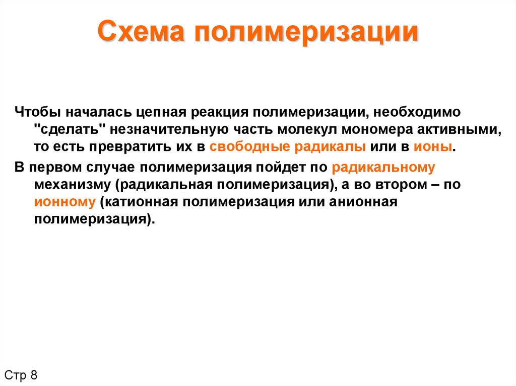 Чтобы началась цепная реакция полимеризации, необходимо"сделать" незначительную часть молекул мономера активными,