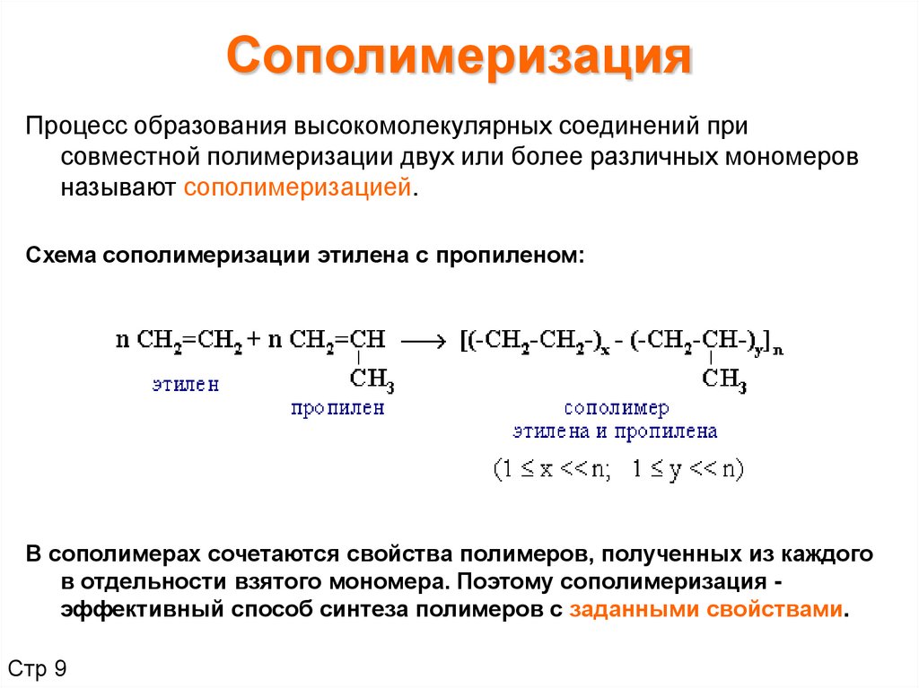 в отдельности взятого мономера. Поэтому сополимеризация эффективный способ синтеза полимеров с заданными свойствами.
