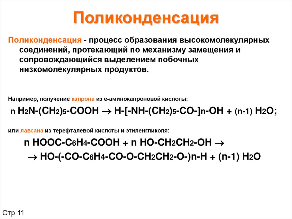ПоликонденсацияПoликонденсация - процесс образования высокомолекулярных