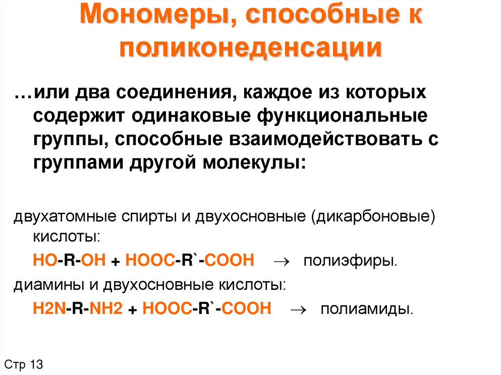 H2N-R-NH2 + HOOC-R`-COOH полиамиды.