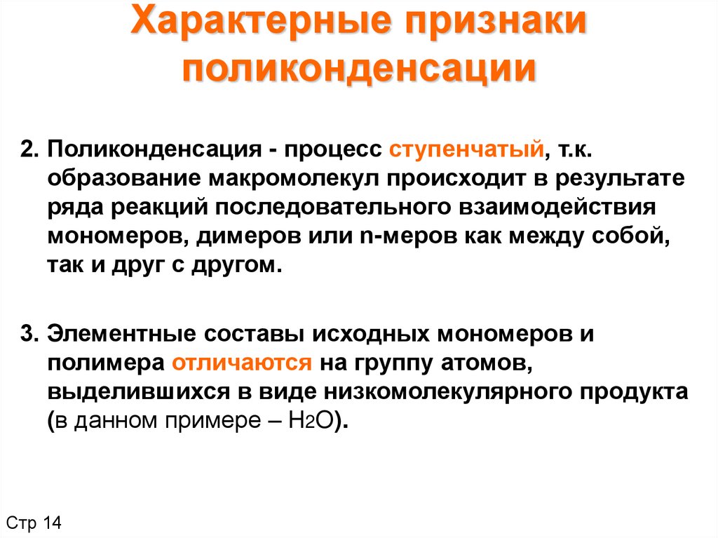 2. Поликонденсация - процесс ступенчатый, т.к.образование макромолекул происходит в результате