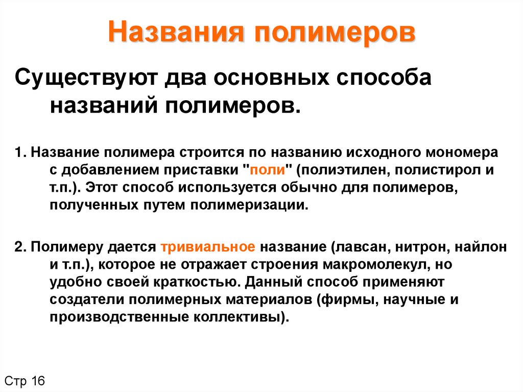 2. Полимеру дается тривиальное название (лавсан, нитрон, найлон